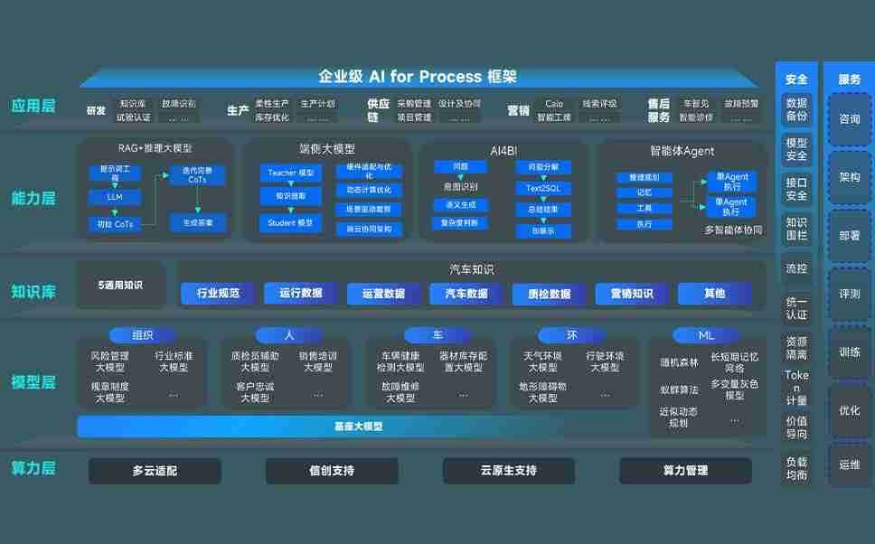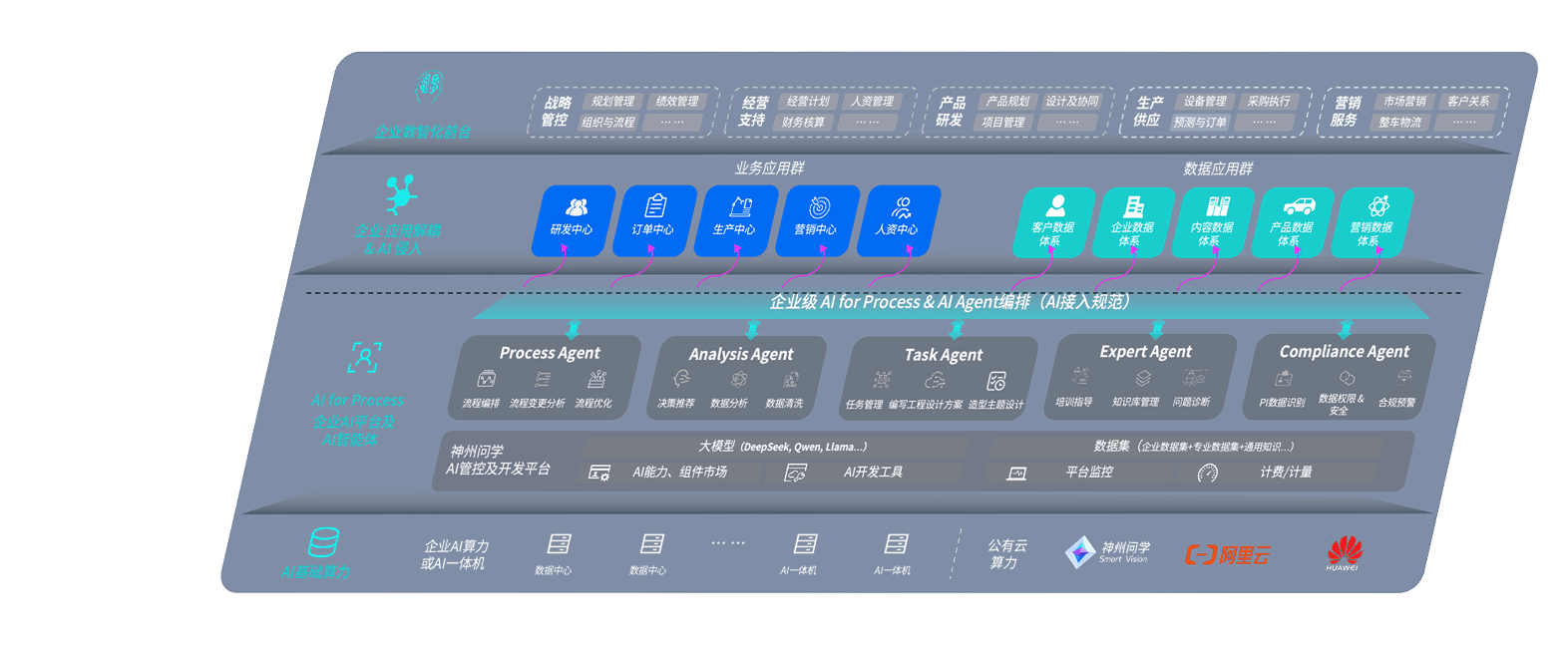 端到端的一站式AI工作空间深度融合了从企业战略规划到日常经营的全流程业务板块,,,定向解决车企内部领域多、、部门多、、、、链条长、、场景碎片化等难题,,,支持车企快速构建以AI为核心的生产力写作体系,,,实现任务执行与AI能力的无缝集成与交互