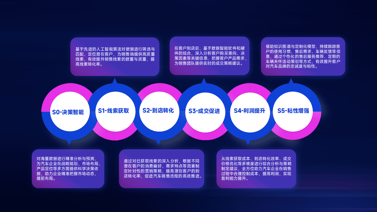 通过拓宽潜在客户来源、、优化线索分配并提高到店转化率,,,,以增强销售效率。。。同时,,,利用线索数据不断优化分析模型,,,,有效提升转化率,,扩大营销影响力。。